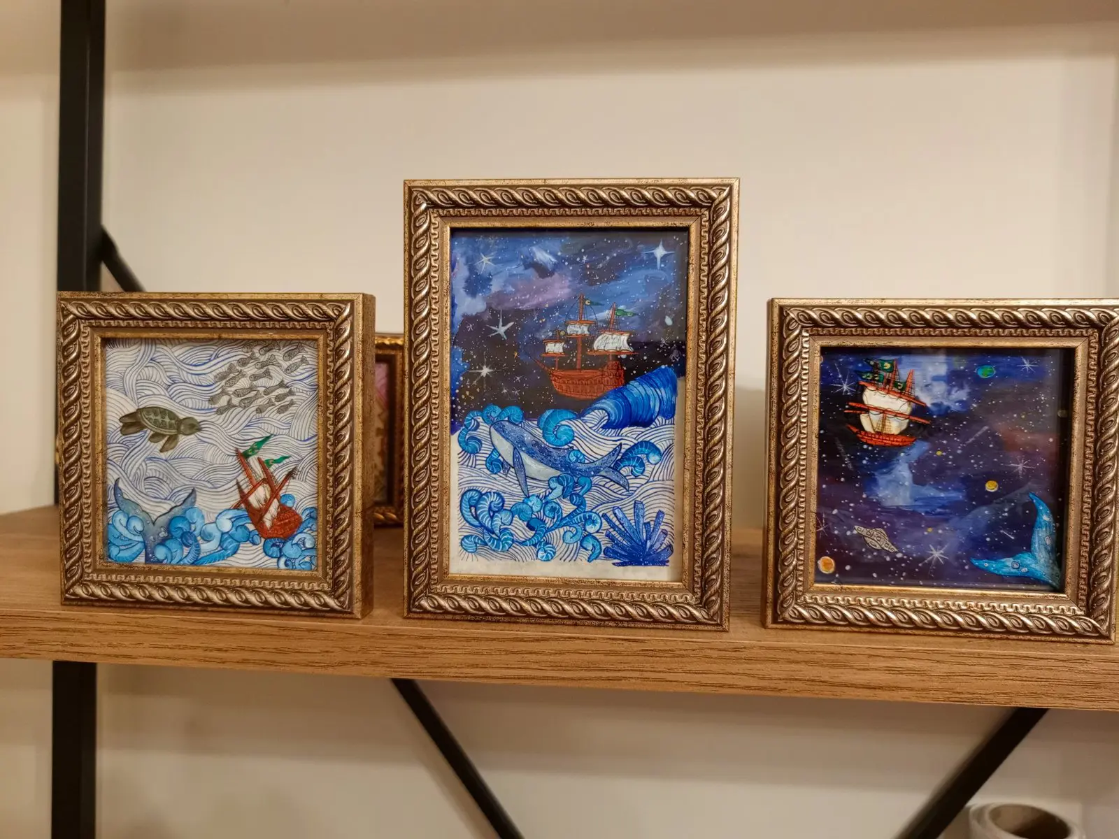 Bu üç eserimde; denizin kadim hafızasıyla gökyüzünün sınırsızlığını bir araya getirmeyi amaçladım. Denizde batan bir gemi, uzayda demir atabilir; denizlerin derinliklerinde nefes alan bir balina, uzayın karanlığında yıldız tozlarına bulanabilir. Göklerdeki yıldızlarla denizlerdeki dalgalar birleştiğinde, yolculuk artık bir yön olmaktan çıkar ve insanın kendi içinde yaptığı bir keşfe dönüşür.